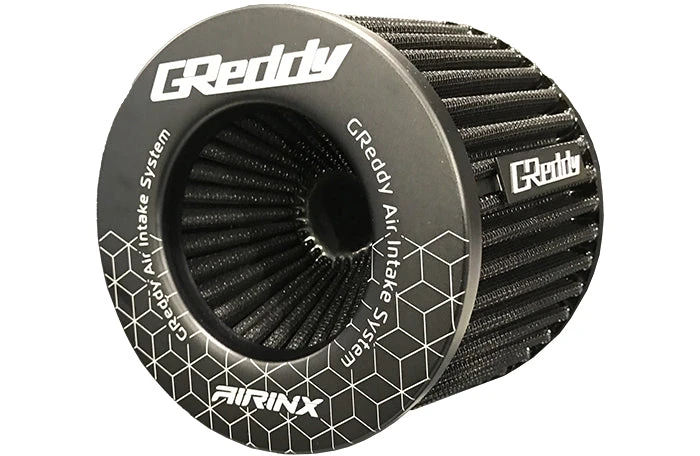 General purpose dry Airinx S Universal Filter with various dia. inlet (50-60, 70, 80mm) with aluminum GReddy side emblem