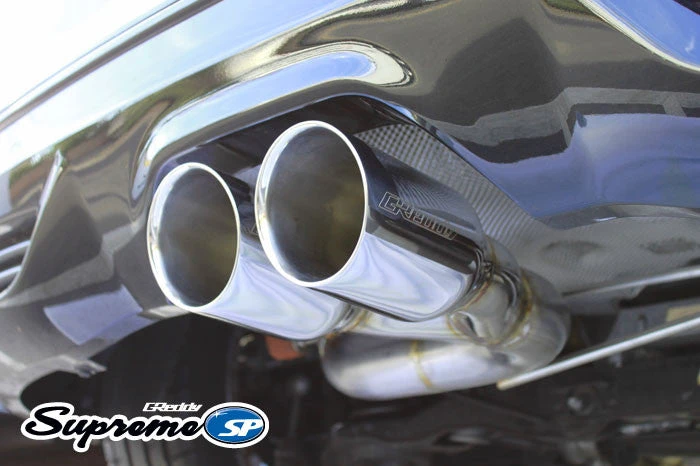 The Supreme SP for the Ford Focus ST combines, classic GReddy styling and sound to boost power from the modern American EcoBoost powerplant. Large 76mm (3”) diameter mandrel piping is carefully routed beneath ST chassis through two inline, compact Supreme SP straight-through muffler sections. Dual 102mm (4”) GReddy double walled tips perfectly finish-off the system through the center exit bumper. Power tests have shown substantial increase in mid-range power and torque, with peak gains of 24whp and 11ft.lbs. Like all GReddy Supreme SP systems the fully hand-welded 304 Stainless-Steel exhaust carries a Limited Lifetime Warranty.