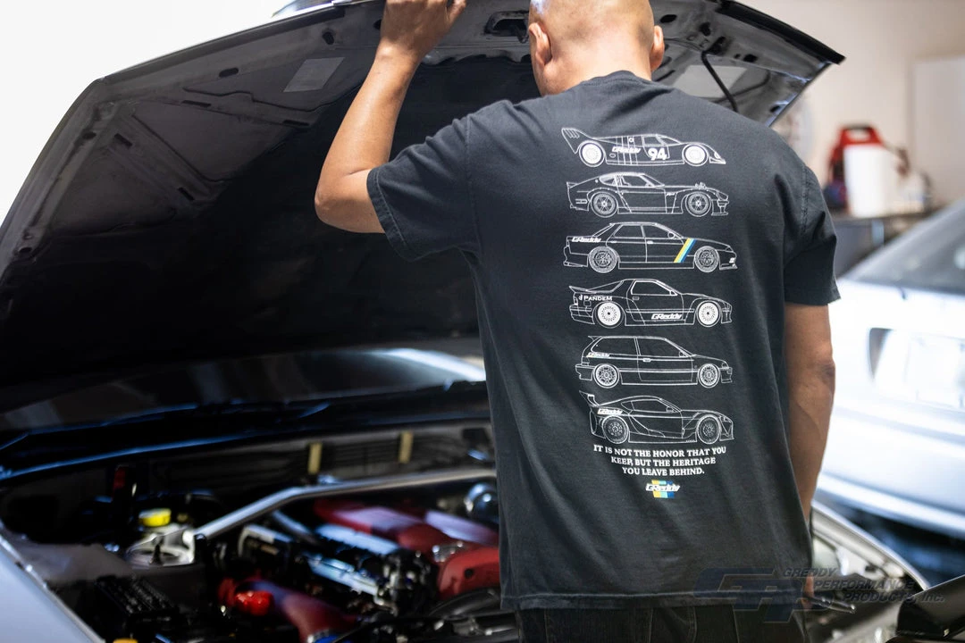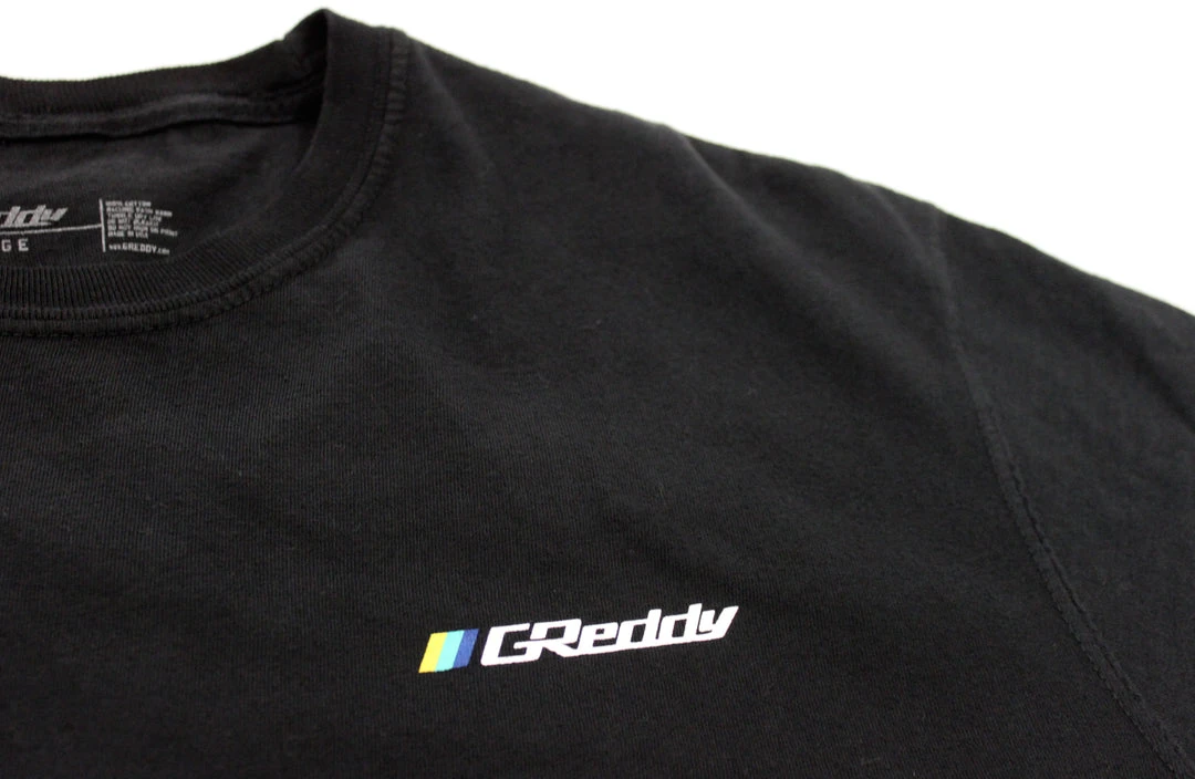 Fabric: 100% ringspun combined cotton, tagless neck, with GReddy label on lower left front.