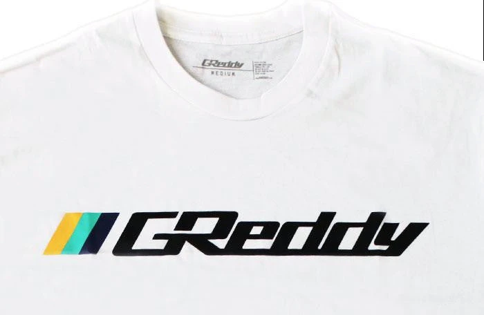 Fabric: 100% ringspun combined cotton, tagless neck, with GReddy label on lower left front.