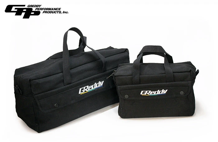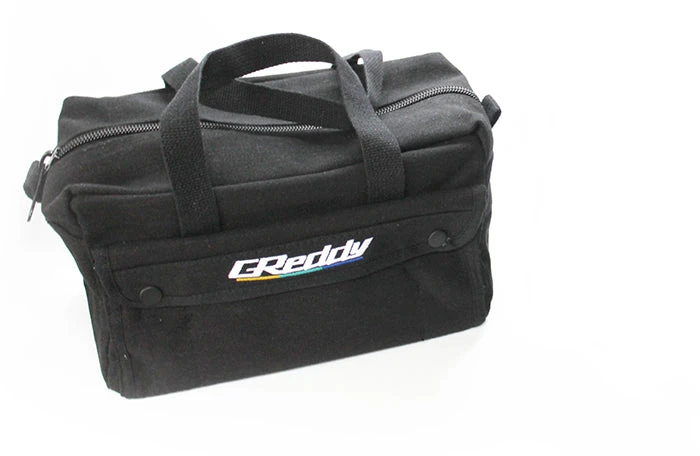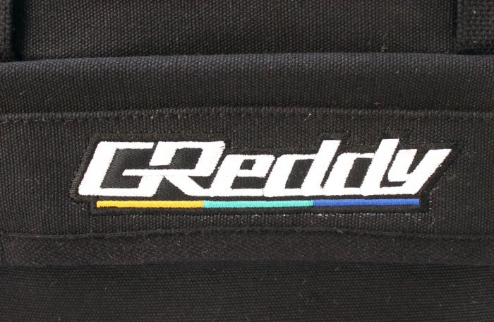 Heavy-duty black 100% cotton canvas material, with embroidered GReddy underline logo (or Boost Brigade embroidered stencil patch)