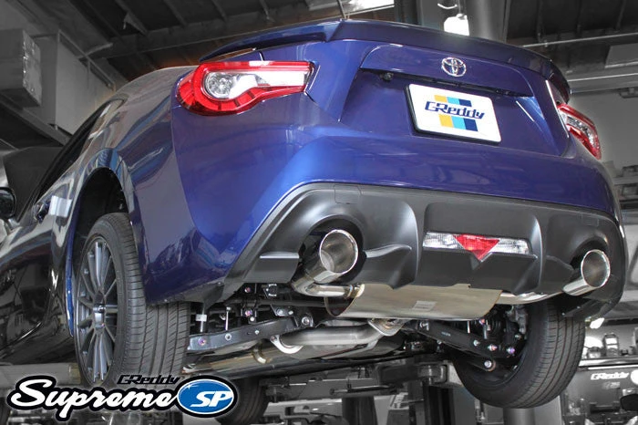 The Supreme SP for the Scion FR-S & Subaru BRZ features a large horizontally mounted, 3-section muffler with a center inlet and an unique, tuned, internal “Y-pipe.” This directs exhaust gases through a center chamber to reduce overall sound and improves flow to the outer straight-through sections. These outer sections of the muffler have our updated high-temp, internal sound suppression system. The exhaust is finished-off with dual GReddy slant-cut, double-walled tips in the factory bumper outlets. This cat-back exhaust also uses a simplified exhaust pipe routing with a large straight-through resonator in the mid-pipe, to tune-out any drone. Like all GReddy Supreme SP systems the fully hand-welded 304 Stainless-Steel exhaust carries a Limited Lifetime Warranty.