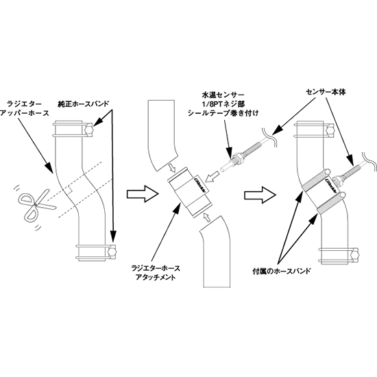 Allows for easy mounting of GReddy 1/8PT Temperature Sensors in: 30mm, 32mm, 36mm, 38mm, or 40mm inner diameters for Upper Radiator Hose