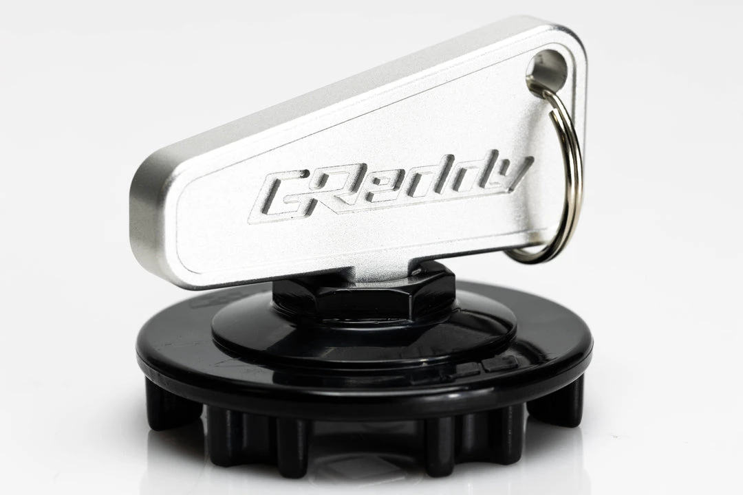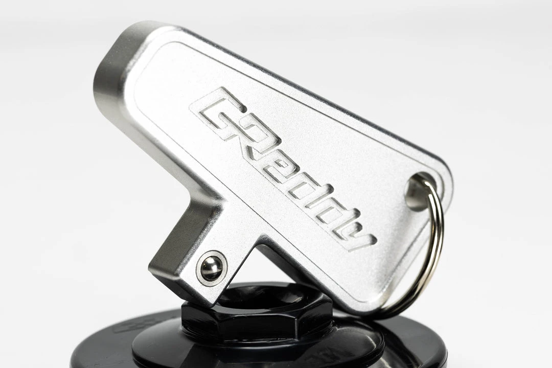 Inspired by a Racecar “Kill (Shut-off) Switch,” these GReddy billet keychains allow for convenient and quick tool to use standard 3/8″ drive sockets (and our GReddy Oil Filler Cap removal tool – sold separately)